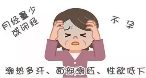 卵巢功能減弱,就意味著雌激素分泌的減少,會出現潮熱多汗、面部潮紅、性欲低下、陰道及乳房的萎縮等低雌激素癥狀,也會有抑郁、焦慮等精神性的異常。